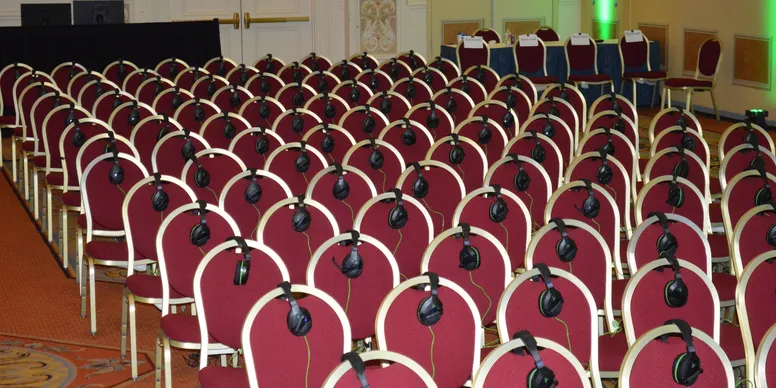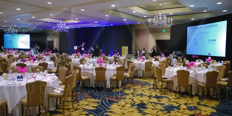 Awards Banquet Reception with custom lighting to match the client's colors and an audio / video set up for the evening.