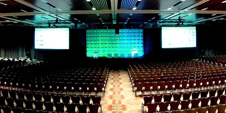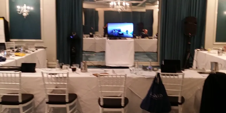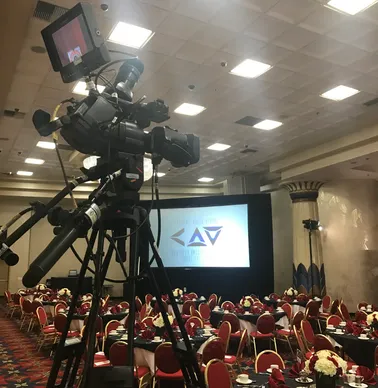 Awards Banquet Reception with custom lighting to match the client's colors and an audio / video set up for the evening.